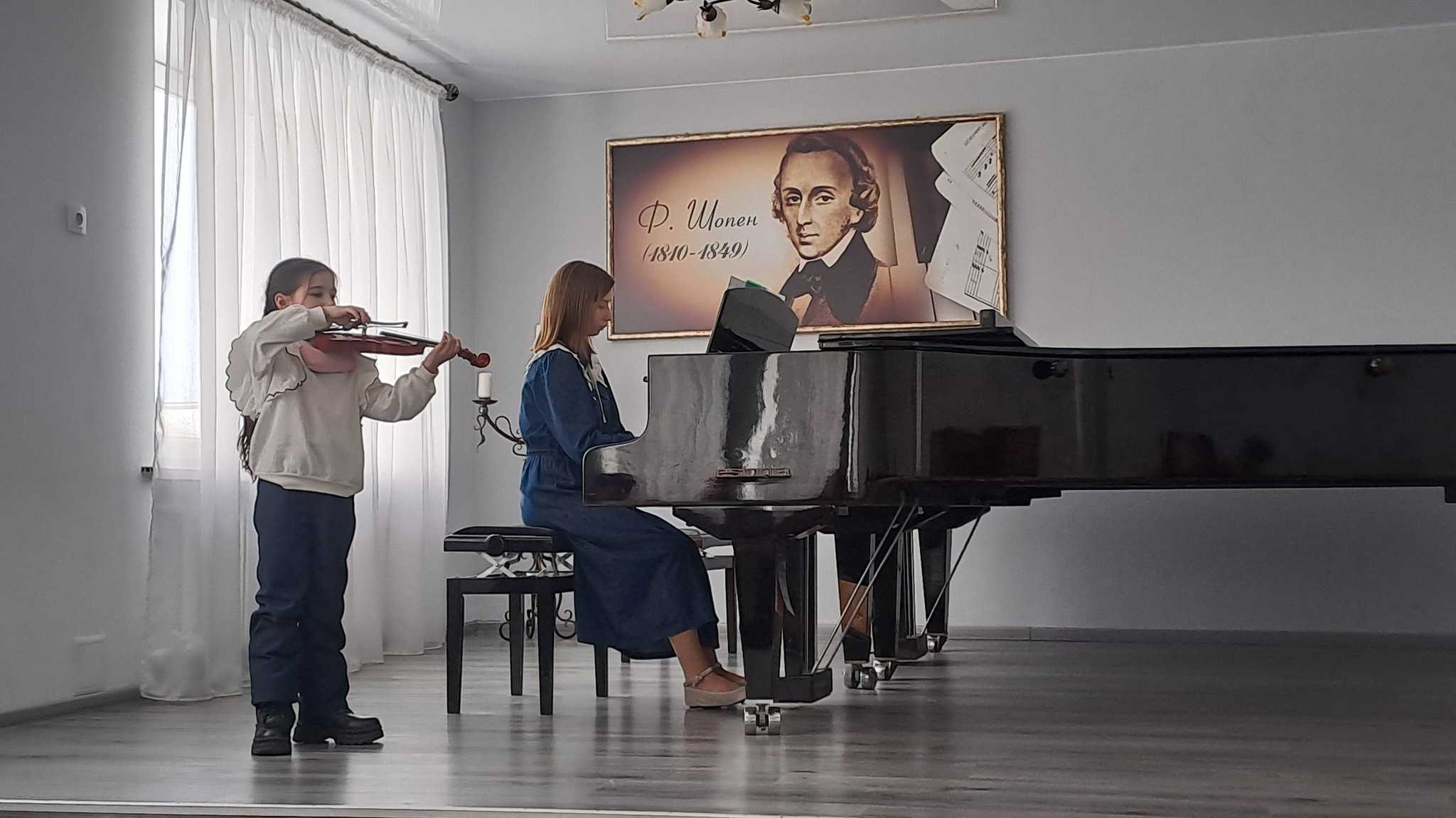 З неабияким хвилюванням 10 квітня в камерній залі школи прозвучали перші публічні акорди в житті юних скрипалів — Давида Шарана, Неоніли Дейнеки, Юлії Кулініч та Софії Кравченюк. Це був не просто дебют — це була щира і хвилююча подорож у світ музики, яка тільки розпочинається. Поруч із ними — молода викладачка Марина Косинець, чия віра, тепло і натхнення стали міцною опорою для перших кроків її учнів.