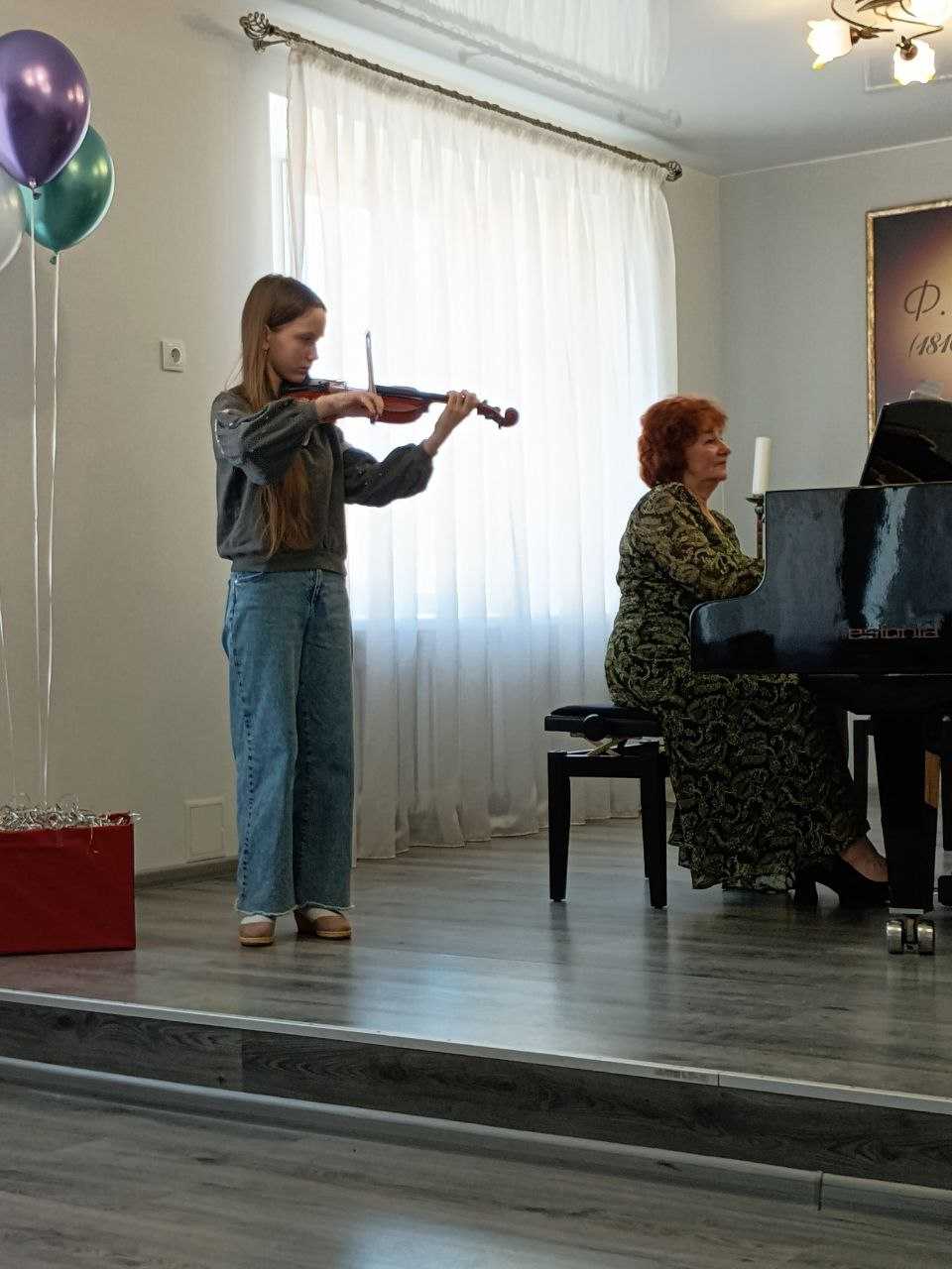 Щороку в класі викладачки відділу струнно-смичкових інструментів Євгенії Анатоліївни Гурич відбувається особливий, теплий і щирий концерт. Це добра традиція, на яку з нетерпінням чекають і учні, і батьки. Діти виходять на сцену не лише для того, щоб продемонструвати свої досягнення, а й щоб подарувати радість, поділитися любов’ю до музики та відчути справжню підтримку рідних.