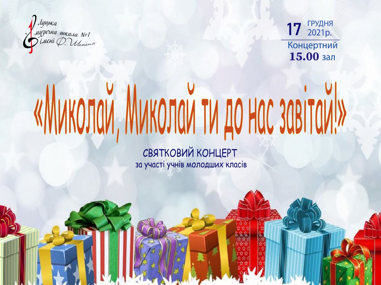 Уже традиційно, напередодні дня Святого Миколая у Луцькій музичній школі N1 імені Фридерика Шопена відбулося казкове дійство – святковий концерт “Миколай, Миколай, ти до нас завітай” за участі найменших талановитих вихованців школи.