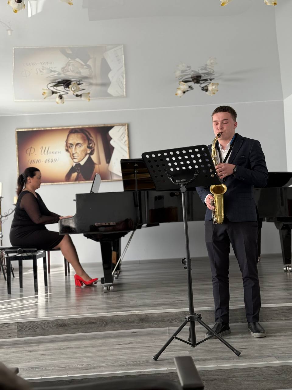 Вечір став справжньою подією — у камерному залі школи відбувся перший концерт класу саксофона молодого викладача Владислава Козицького, якому акомпанувала натхненна та чутлива концертмейстерка Олександра Хоруженко.