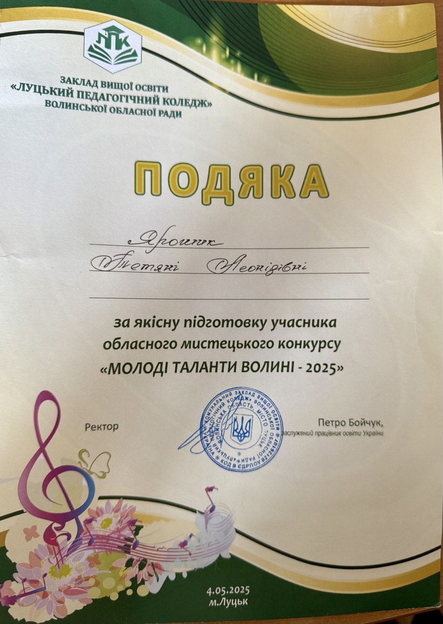 Використано інформацію з офіційної сторінки Заклад вищої освіти “Луцький педагогічний коледж” Волинської обласної ради