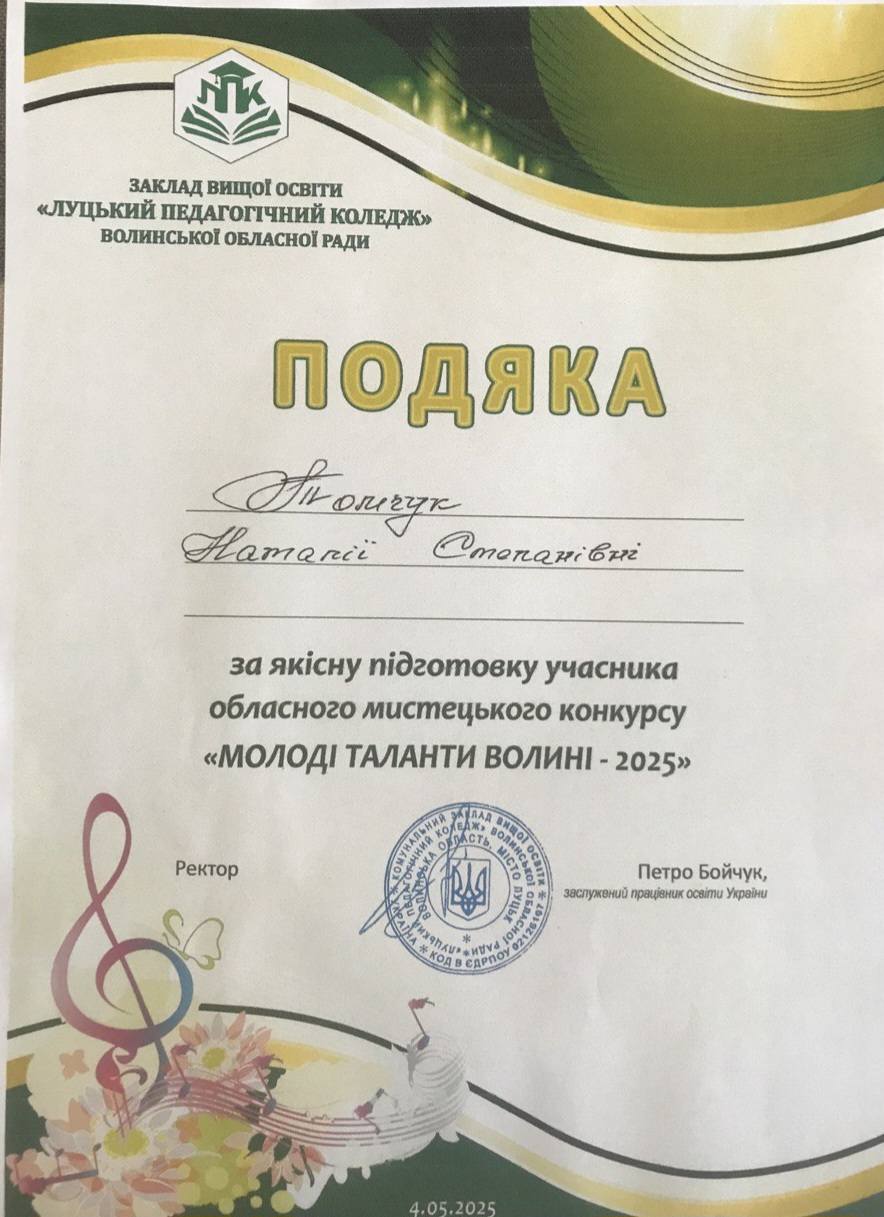 Традиційно, у травні, в закладі вищої освіти “Луцький педагогічний коледж” відбувається щорічний обласний мистецький конкурс “Молоді таланти Волині 2025”, за підтримки управління освіти і науки Волинської обласної державної адміністрації.