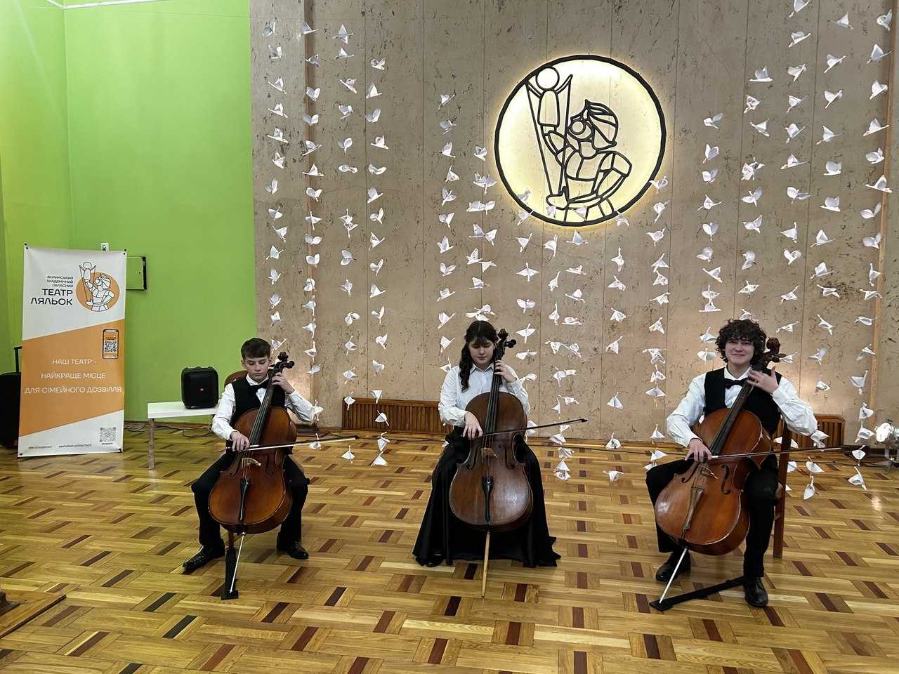 У фоє театру виступили Кароліна Дармофал (викладачка Софія Ярощук), Сара Момот (викладачка Алла Грицай) та тріо віолончелістів у складі Максима Головатого, Єви Бацаєвої, Даніеля Конзери під керівництвом Тетяни Тітяєвої.